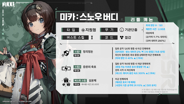 지원형은 현재도 많긴 하지만, 루드밀라와 함께 피해량 감소를 통해서 기차를 돌파하고 싶다면, 괜찮은 니케가 될 것 같다.