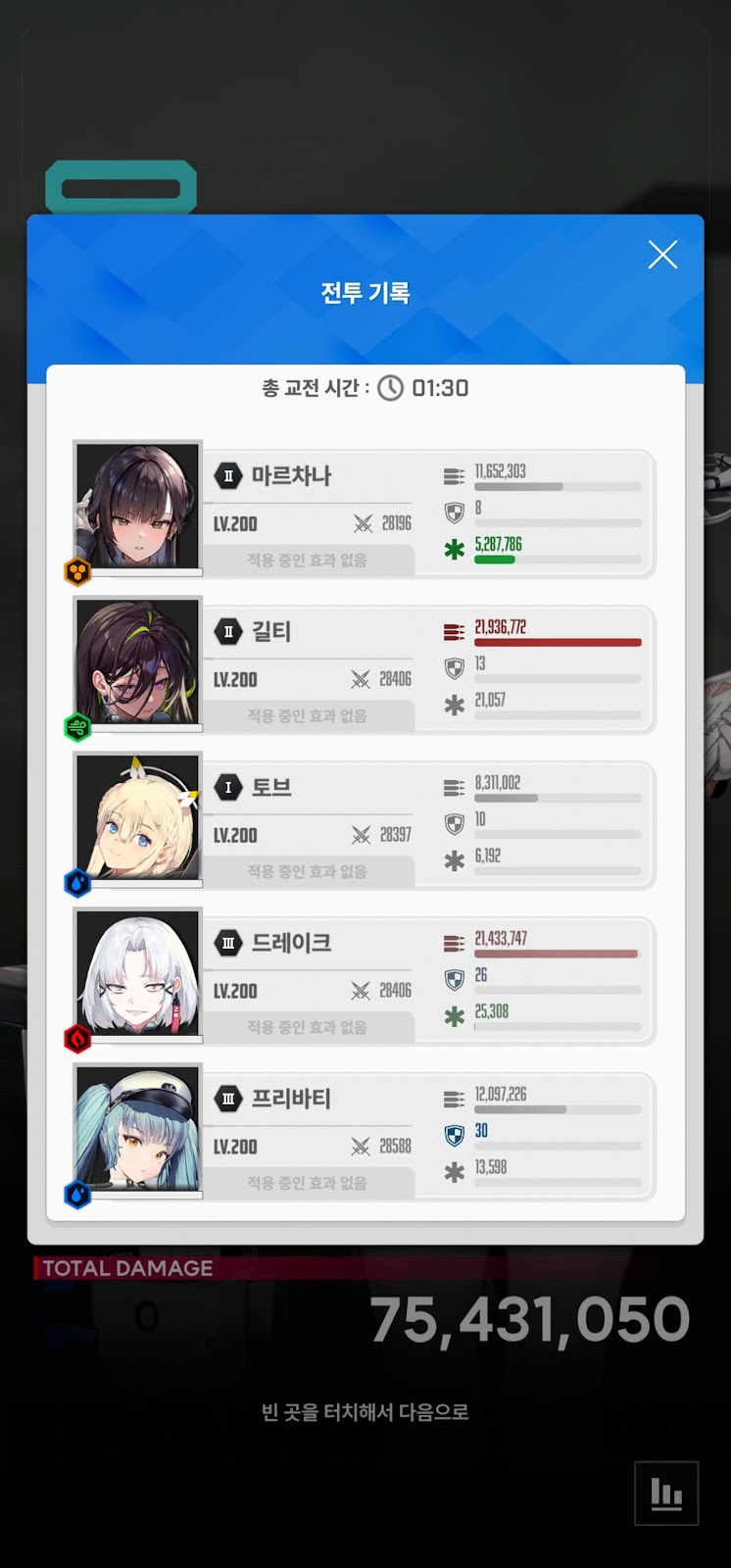 길티와 마르차나는 상승량이 높은데 드레이크는 생각보다 높지 않은 점이 기본적으로 피해량이 드레이크는 탄 발사보다, 스킬피해량 비중이 높기 때문인데 따라서 증가량을 잘 받기 위해서는 방어력 감소, 피해향 증가등 자체적인 탄 발사 강화를 하는 캐릭터들이 효과는 더 크게 증가된다.