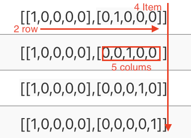 테스트 두번째 [[1,0,0,0,0],[0,0,1,0,0]]