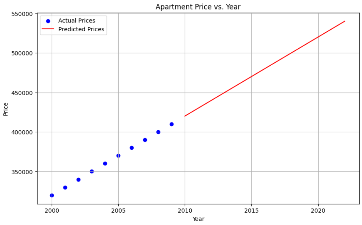 model.fit(years_reshaped, apt_prices)