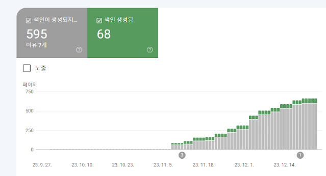 필자 기준으로 거희 500개가 넘는 페이지들이 색인이 되지 않고 있는 상황이였다.