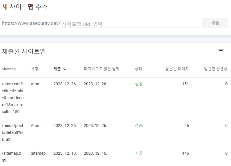 위 3가지 주소를 등록하여 보다 색인을 자주 만들수 있도록 해주자.