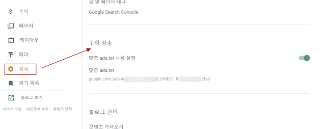 - '수익 창출' 탭에서 '맞춤 ads.txt 사용 설정'을 선택합니다.