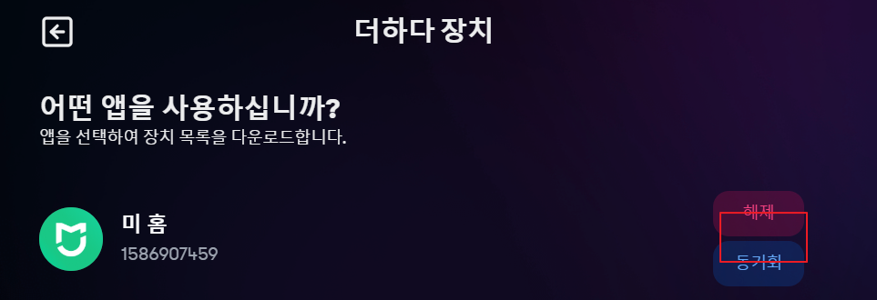 이후 외부 사이트와 연결되어 사용상 찜찜함이 있을 수 있기 때문에, 더하다 장치버튼으로 미홈에 들어가 연동을 해제 해 두기를 추천한다.