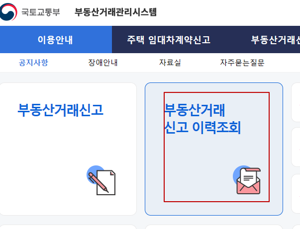 따라서 아래 부동산거래 신고 이력조회를 통해 조회를 할 수 있다.
