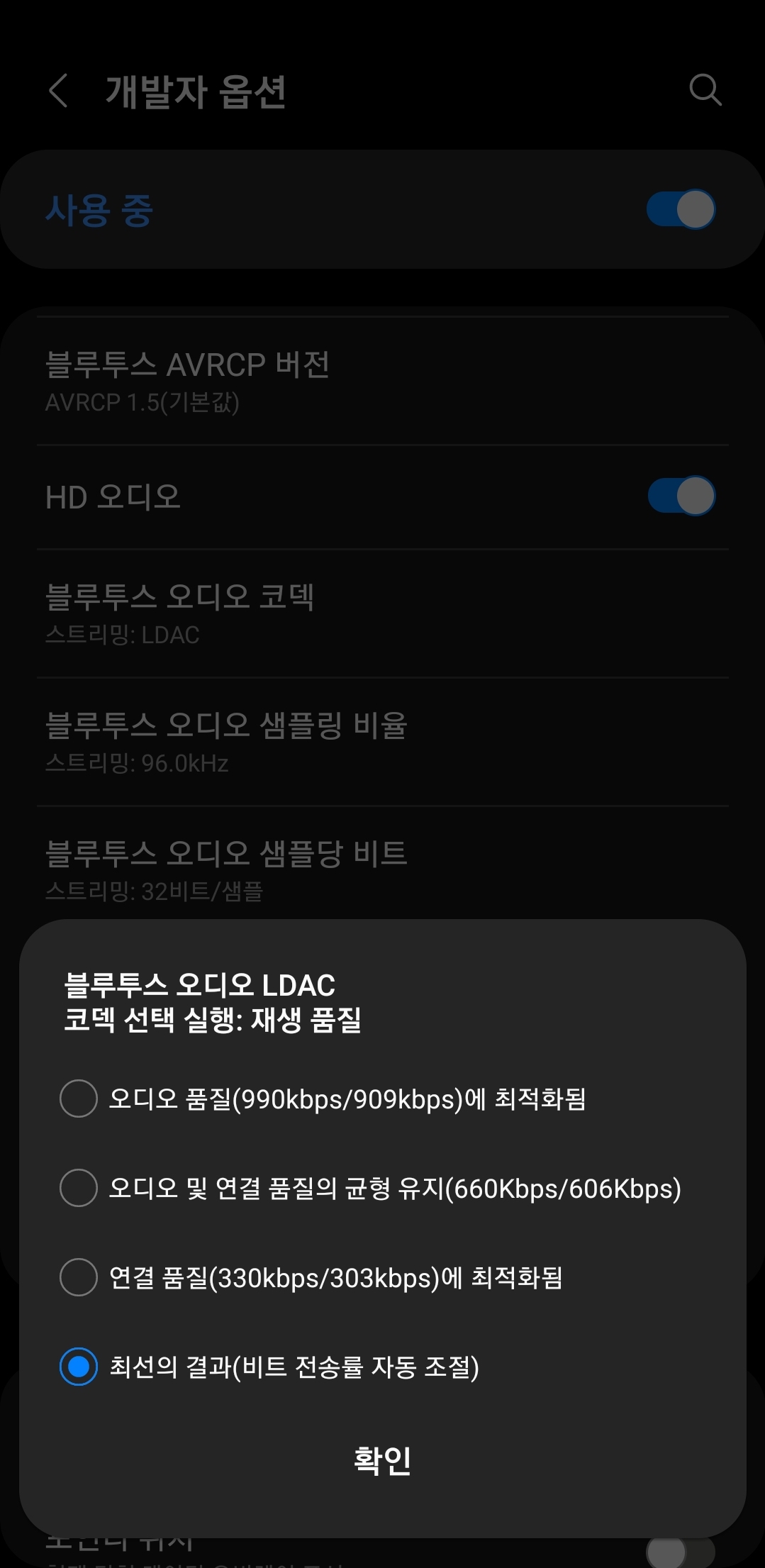 - 안드로이드 8.0부터 블루투스 LDAC 기본 지원