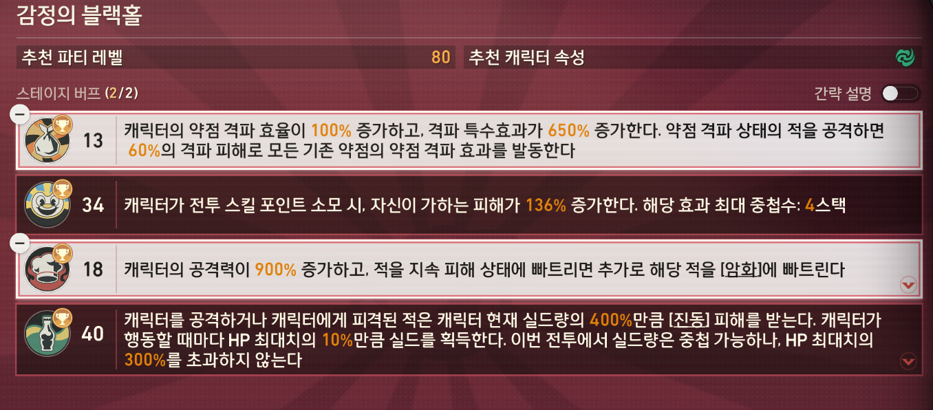 그외 적들이 제어불가 디버프를 간혹 사용하기 때문에 서포터로 디버프 해제에 효과적인 캐릭터를 데려가기를 추천한다.