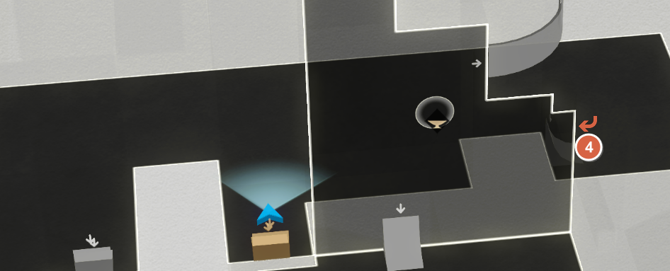 - 중앙 큰방의 거품 다리를 사용하지 않고 홀 끝 쪽에 문이 하니 있다. 그 안쪽 방의 책장에 숨어 있다.