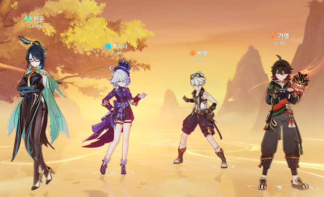 여기에 융해 원소 반응을 위한 푸리나를 넣어주면 완벽한 4성 온필드 파티가 구성 될 것이다.