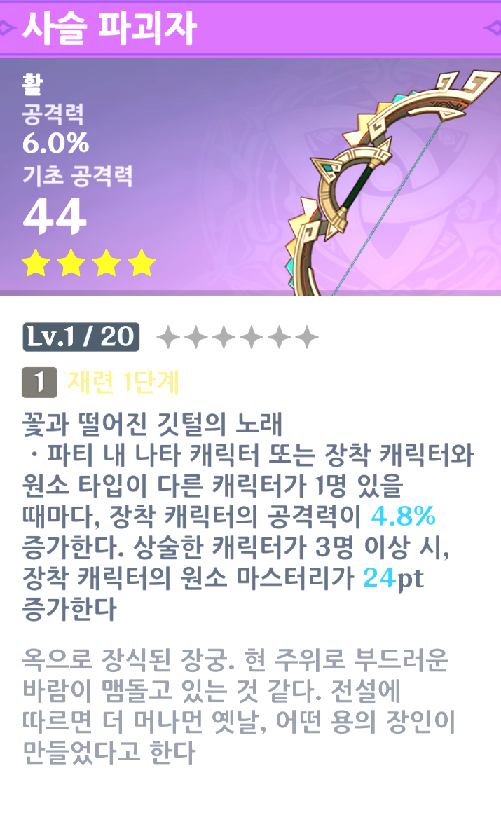 사슬 파괴자/활 - 원소 타입 다양성에 따른 공격력 증가