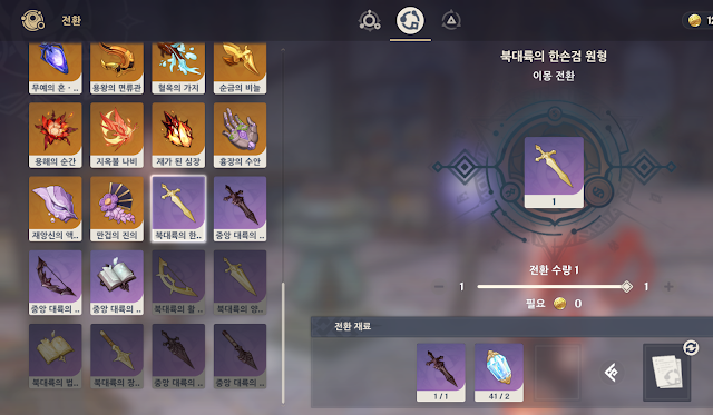 최근 수메르 단조 무기는 중앙 대륙 무기 원형이 필요한데, 만약 북대륙 원형이 있다면 이를 중앙 대륙으로 변환하여 사용이 가능하다.