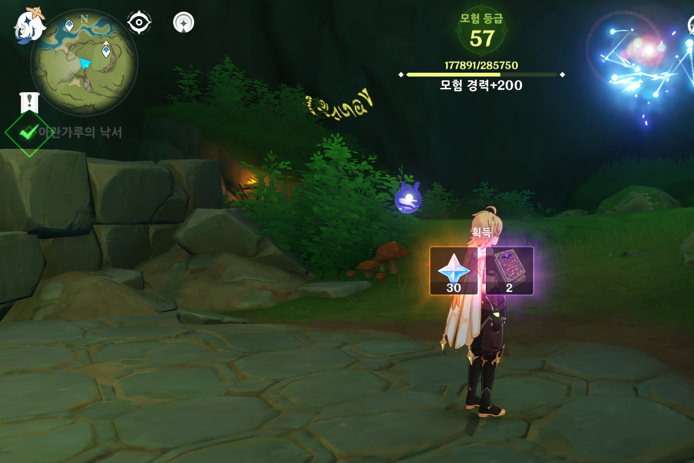 이를 다시 아란가루 에게 알려주면, 아란가루의 낙서 퀘스트가 완료된다.