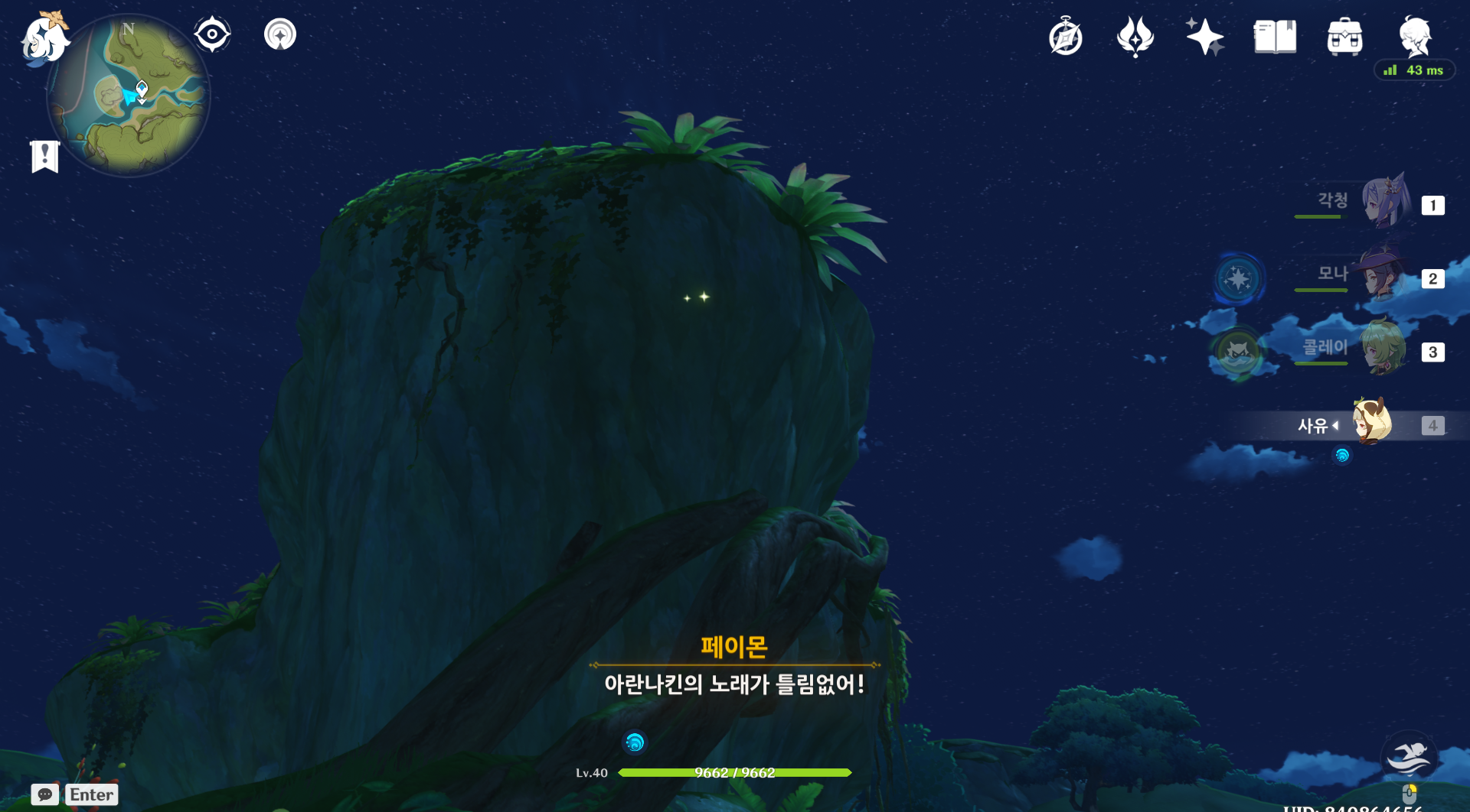 근처에 도착하면, 아란나킨이 노래를 부른다며, 자동으로 임무가 진행된다.
