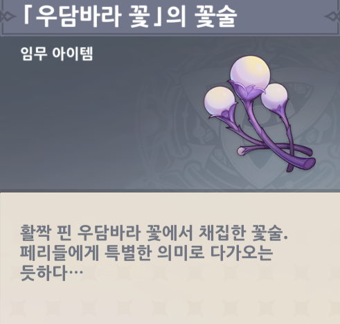 | 원신 임무 - [해초 바다 탐색] 수선화의 흔적 (0) | 2024.02.27 |