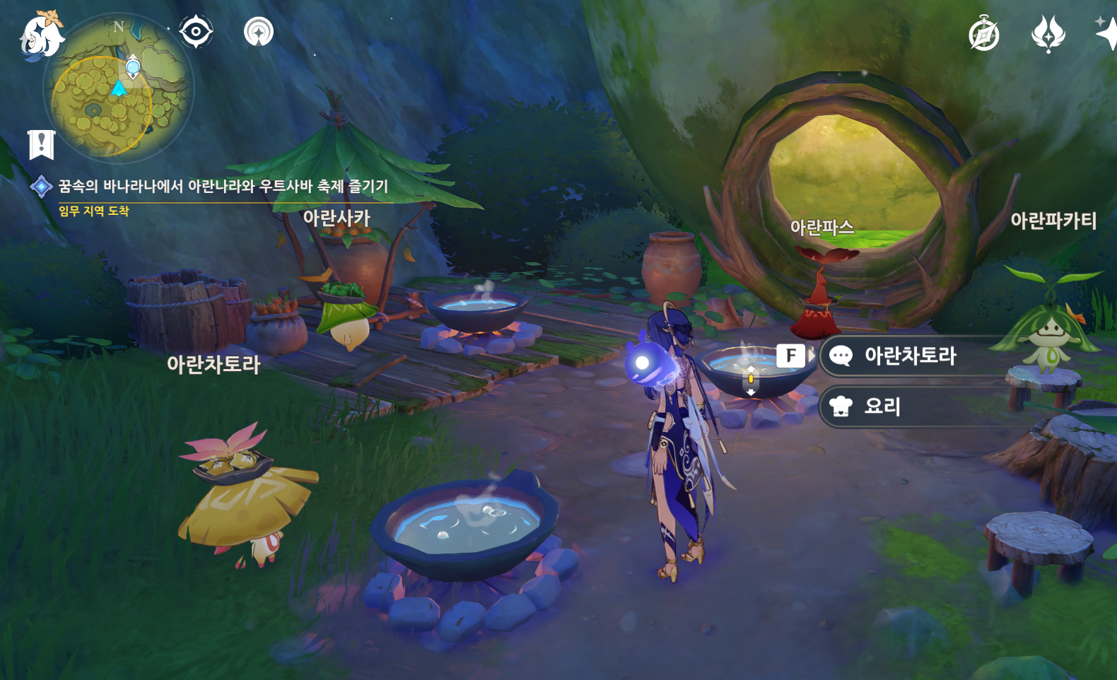 우트사바 축제는 숲의 책 2장 가장 마지막에 진행해야 하기 때문에 필자와 같이 아래 위치로 와서 요리를 도와주면 진행이 가능하다.