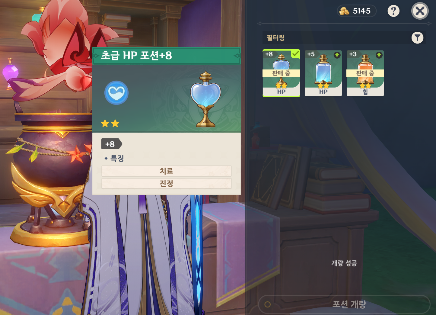 포션 개선은 무료로 포션을 +1 올릴 수 있으므로 주기별로 수행하도록 하자.