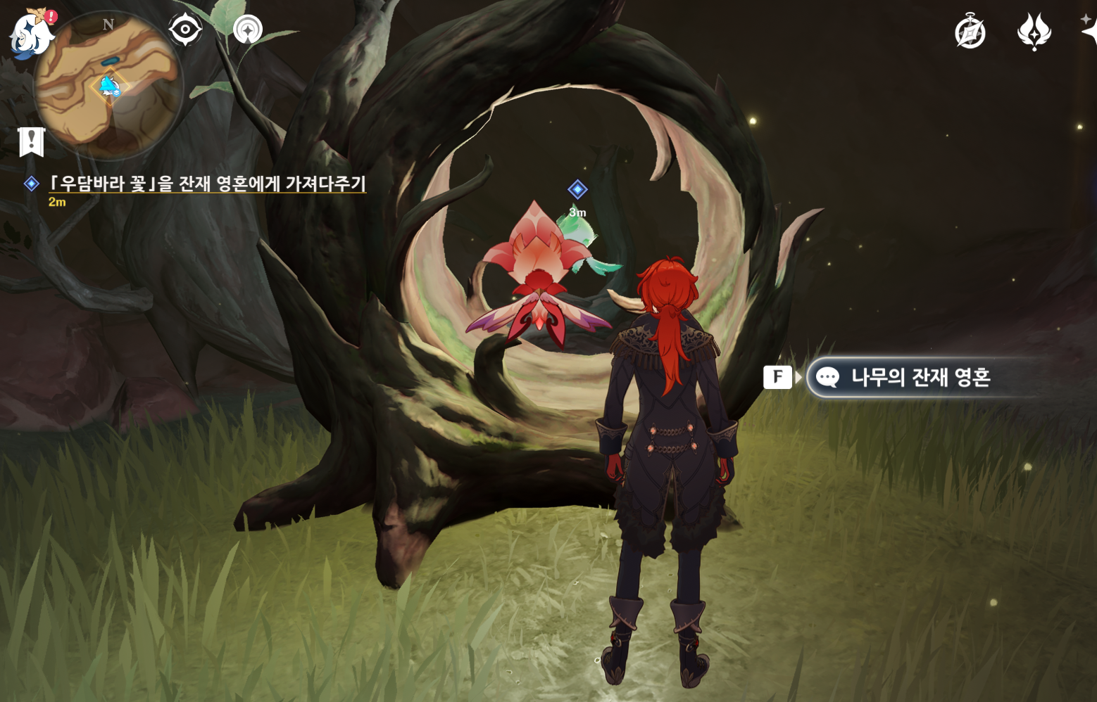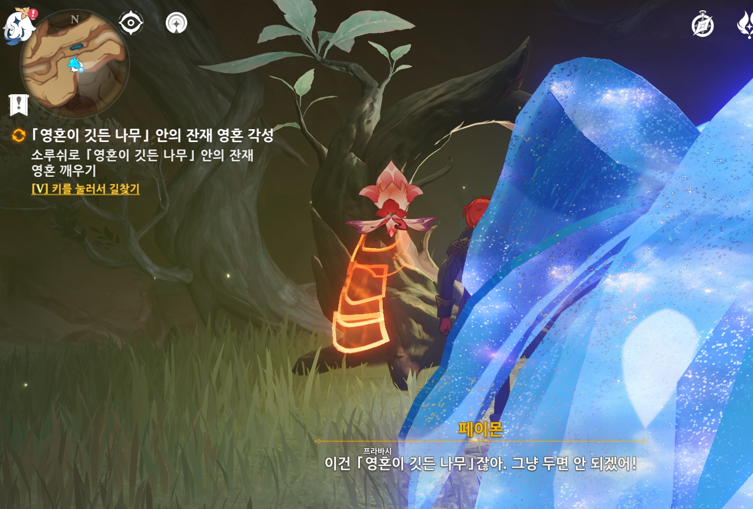 미약한 불꽃은 영혼이 깃든 나무를 찾게되면 자동으로 발동하는 임무이다.