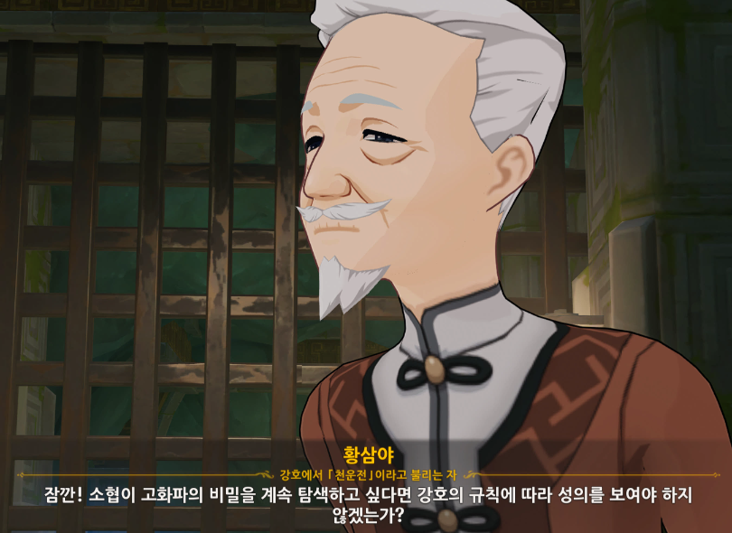 할아버지에게 얘기를 시작하면 고화파 관련된 임무를 시작하게 된다. 그리고 함께 영몽산으로 이동하여 자신이 젊였을 때 수행했던 내용들을 여행자와 함께 가보게된다.