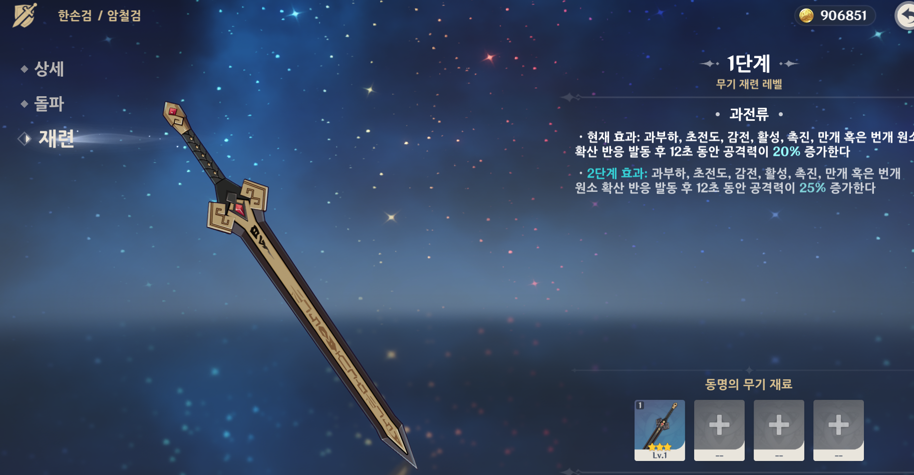 암철검은 원신 1.0때 부터 존재했던 3성 검으로 리월 항구의 쾌도진에게 하나를 받을 수 있는데 성능이 나쁘지 않아서 괜찮은 검으로 알려져있다. (3성이기 때문에 받으면 반드시 잠금을 하는게 좋다.)