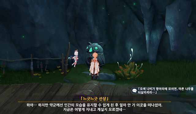 오색 나비를 쫒으면 항아리로 들어가는데, 과거 약군이 여기에서 연구를 하며 얘기해준 것이 마른 나무를 살리기 위해서는 오색 나비가 흩어지지 않아야 한다는 것이다. 이에 석상은 오색나비를 원래 자리로 쫒아주기를 여행자에게 부탁하게 된다.