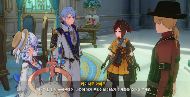 그리고 다시 임무로 돌아오면, 아야토 , 아야카, 치오리를 만나기 위해 아래 폰타인 성 중앙으로 이동하여 나비아선으로 가자.