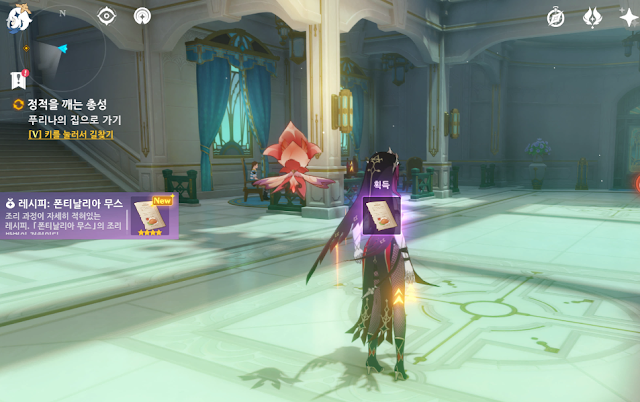 페이몬과 여행자가 스크립터와 카메라 맨을 맡기로 하고 감독을 해줄 인물을 찾던중 푸리나가 제격이라고 하면서 푸리나에게 부탁을 하기 위해서 폰티날리아 무스를 사서 가기로 하면서 해당 레시피도 얻게 된다.