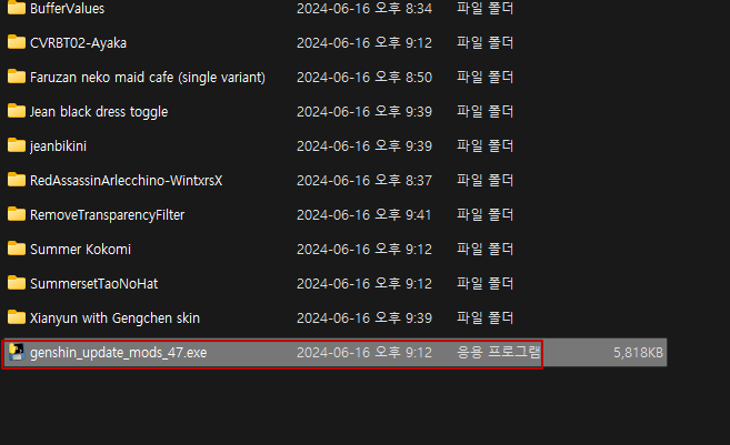 이후 위 도구를 적당한 디렉토리에 압축을 해제 한 후, Mods 경로에 다운로드한 스킨을 넣어주고서 3DMigoto Loader.exe를 관리자 권한으로 실행하고, 이후에 원신을 실행된다.