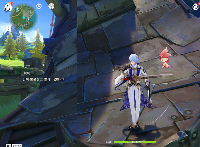열고 들어가면, 진귀한 보물상자와 광석, 신의 눈 하나를 획득 할 수 있다.