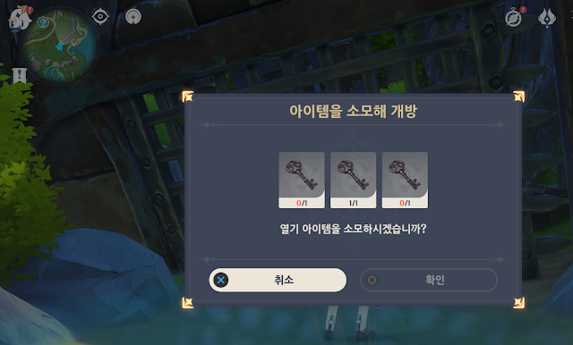 열고 들어가면, 진귀한 보물상자와 광석, 신의 눈 하나를 획득 할 수 있다.