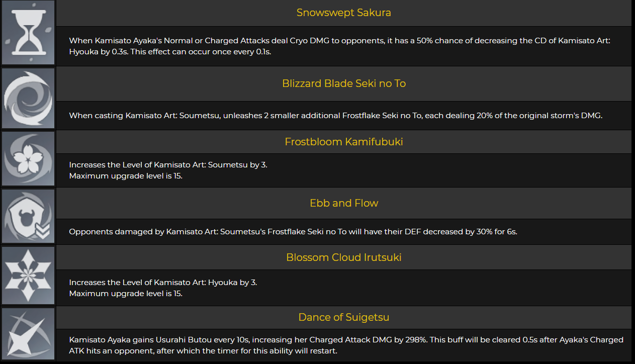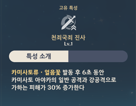 스킬들의 설명을 간단하지만 강력하고, 레벨 돌파에서 제공하는 특성들은 버릴것이 하나 없는, 아야카가 미호요 동생이라는 별명이 붙을 정도이다.