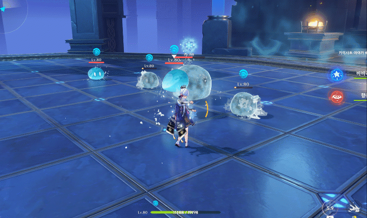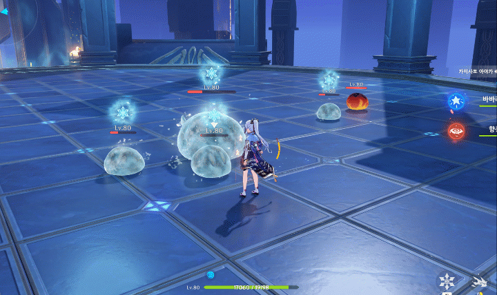 먼저 바람 원소 캐릭터인 설탕이나, 카즈하, 벤티를 이용해서 적들을 모으고, 이후 긍극기를 사용하는데, 이때 물 원소인 행추, 코코미, 모나, 아야토를 이용해 빙결을 시키면서 5초안에 적을 섬멸하는 방식으로 운용하면 효과적일 것이다.