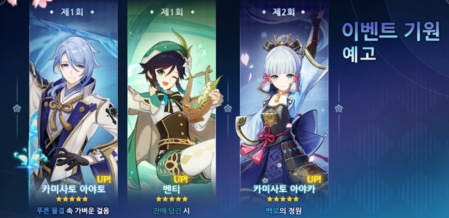 픽업 순서는 1차 아야토+벤티, 2차 아야카 순서로 진행된다고 한다.