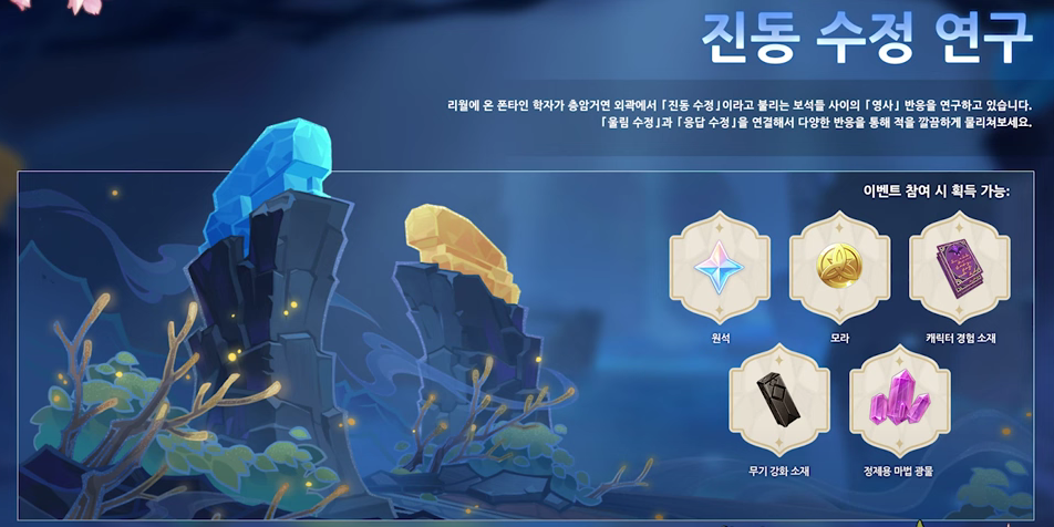 진동 수정 연구는 백명의 봉기처럼 이벤트 던전에서 파티를 통해 돌파하는 이벤트로 체험 캐릭터도 즐겨볼 수 있고 고난이도를 통해 몬스터와 결투를 해보는 즐거움을 주는 이벤트로 보인다.
