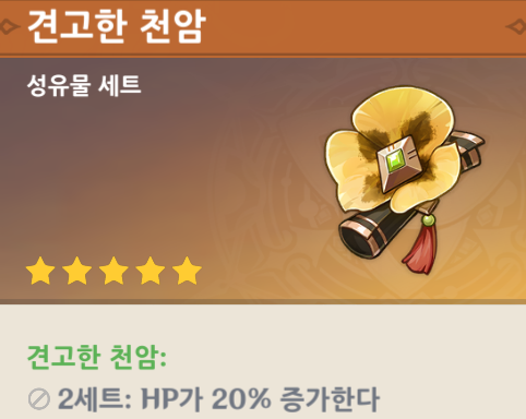 캔디스는 공격력은 딜러 포지션보다는 서포터에 가깝기 때문에 체력 증가에 도움이 되는 견고한 천암 성유물이 좋을 것으로 판단된다.