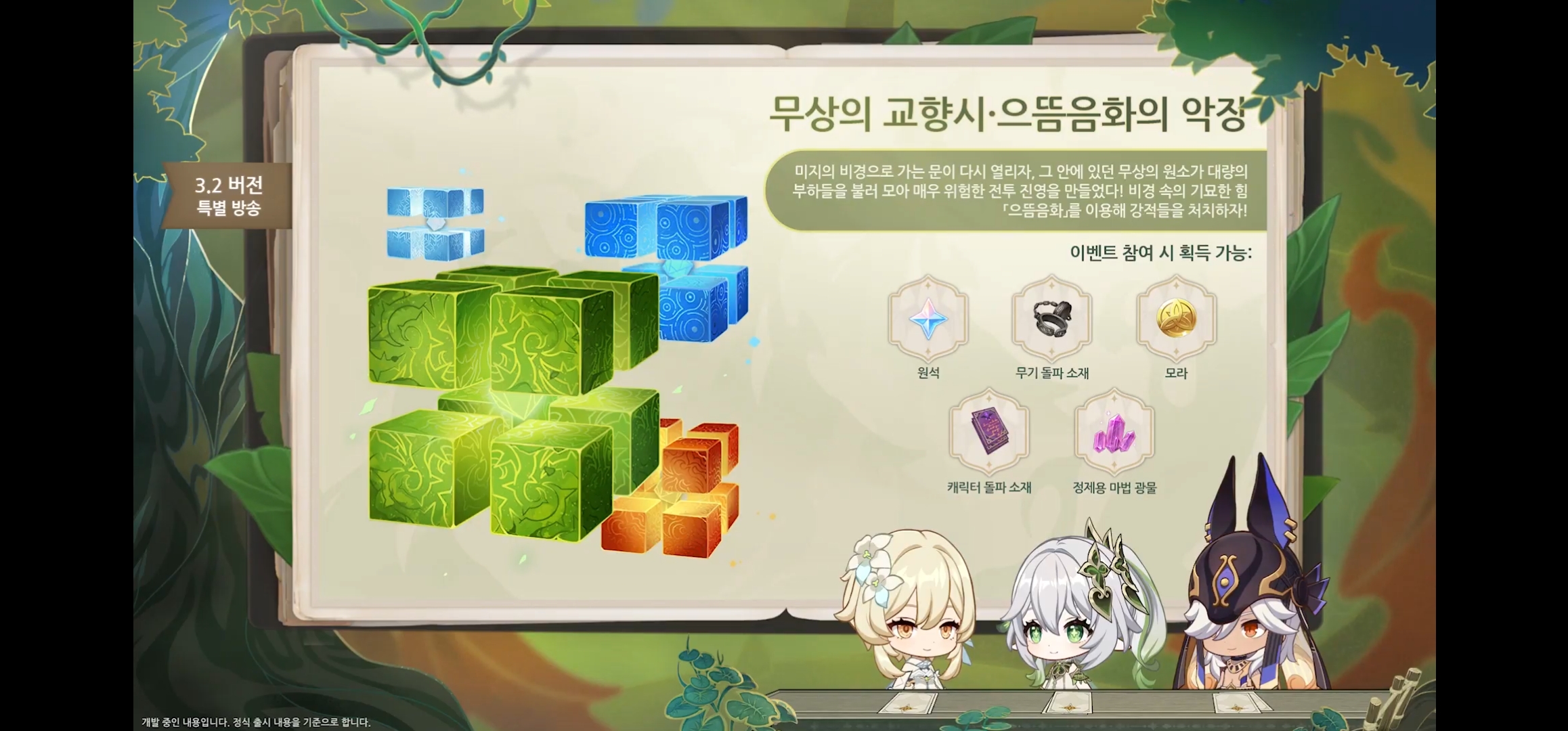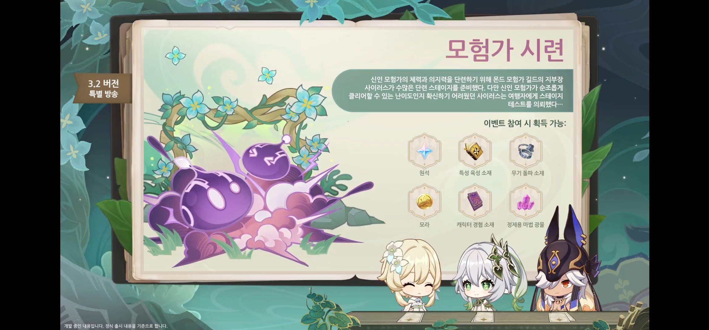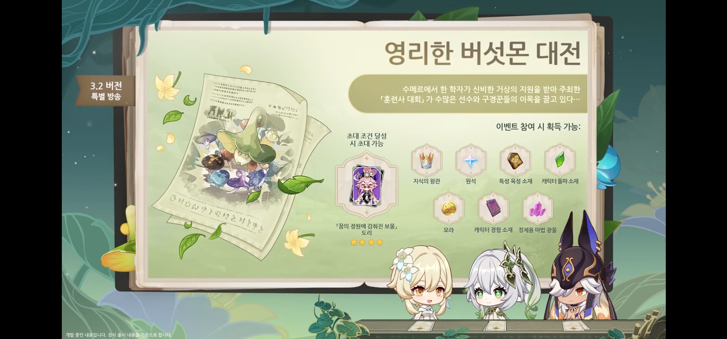 나히다 전용 무기인 떠오르는 천일 밤의 꿈 도 등장 예정이다.