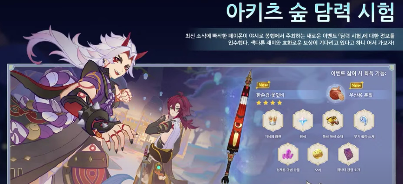 3.3 메인 이벤트는 이나즈마 섬에서 진행하는 아카츠 숲 담력 시험 이다. 이벤트 한정 무기로 꽃잎비를 준다. 재미있는 이벤트일 것 같다.