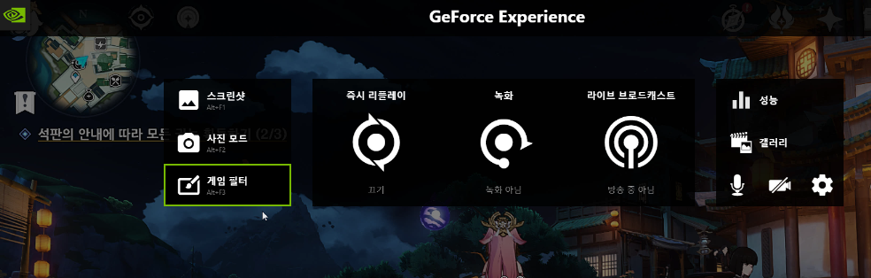 하지만 현재 색감이 너무 강해서 게임 플레이를 하기에는 원활하지 않아 적당한 것을 찾던중에 Geforce Experience를 통해서 조금은 색다른 느낌을 구사할 수 있음을 알게 되었다.
