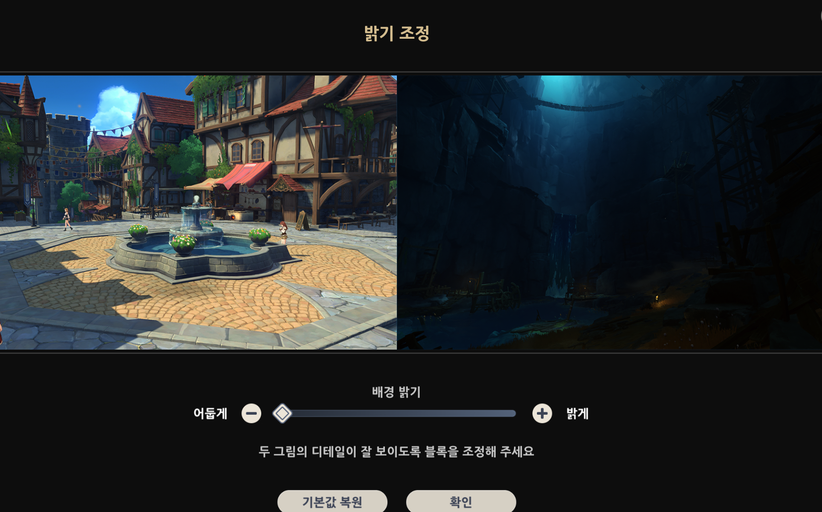 만약 별도의 설치없이 색감을 진하게 하고 싶다면, 설정에서 그래픽 옵션을 통해 밝기는 낮추는 것으로 가능하다 :)