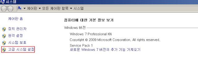 제어판 –> 시스템으로 이동하면 고급 시스템 설정에서 확인할 수 있다.