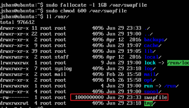sudo fallocate -l 1GB /var/swapfile