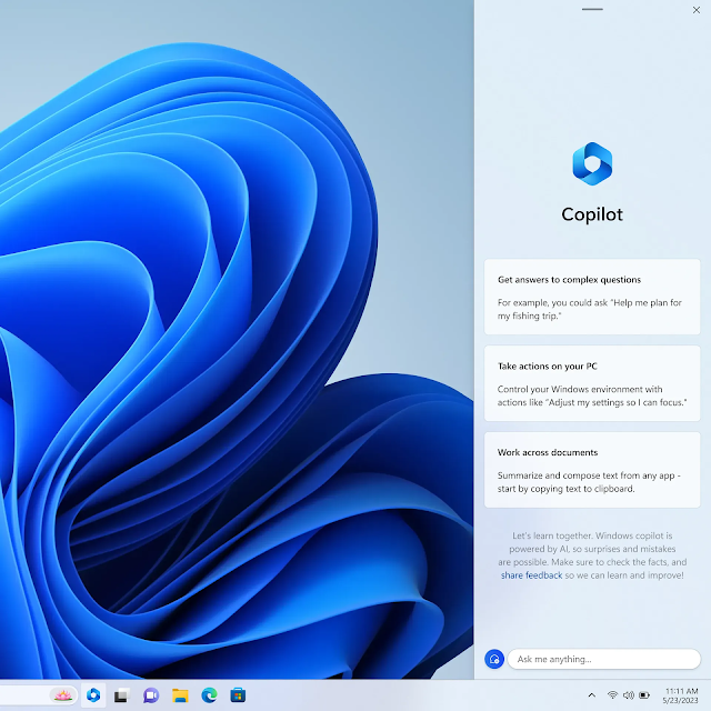 Windows Copilot은 AI 기반 챗봇으로, 사용자의 작업을 도와줍니다. 예를 들어, 텍스트를 입력하거나, 스크린샷을 찍거나, 자연어를 사용하여 다른 작업을 수행하도록 요청할 수 있습니다.