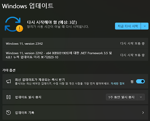 Windows 11 23H2 업데이트는 보안 및 성능을 개선하는 데 중점을 둔 업데이트입니다. 새로운 보안 기능이 추가되고, 성능이 개선되었습니다.