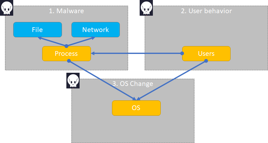 Malware가 실행되었는지를 확인해야 한다. OS를 변경하거나 File을 생성혹 변경하고 네트워크 활동을 할 수 있다. 따라서 Malware를 확인 할 때, Malware는 Kernel 혹은 User 모드로 실행되어 Process 자체만으로 확인이 어려울 수 있고, Dropper 와 같이 변형이 일어날 수 있기 때문에 Process와 함께 File과 Network 활동을 같이 확인해야 한다. Malware는 VirusTotal이나 Anti-Virus Engine의 도움을 받을 수 있다.