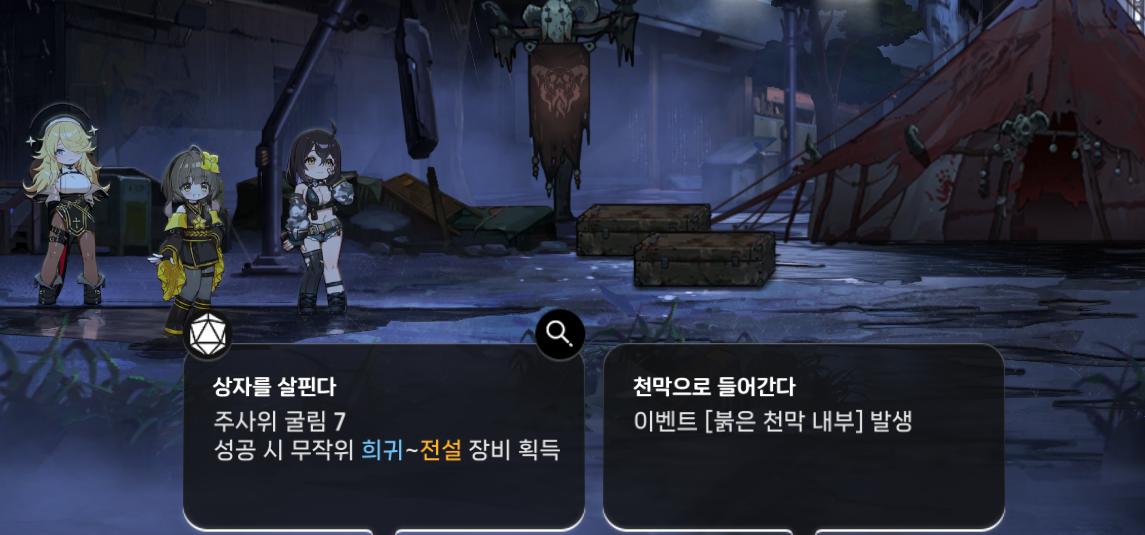 버려진 창고에 진입한다: 주사위 굴림 > 성공시 다크스타 창고 진입 이벤트 발생