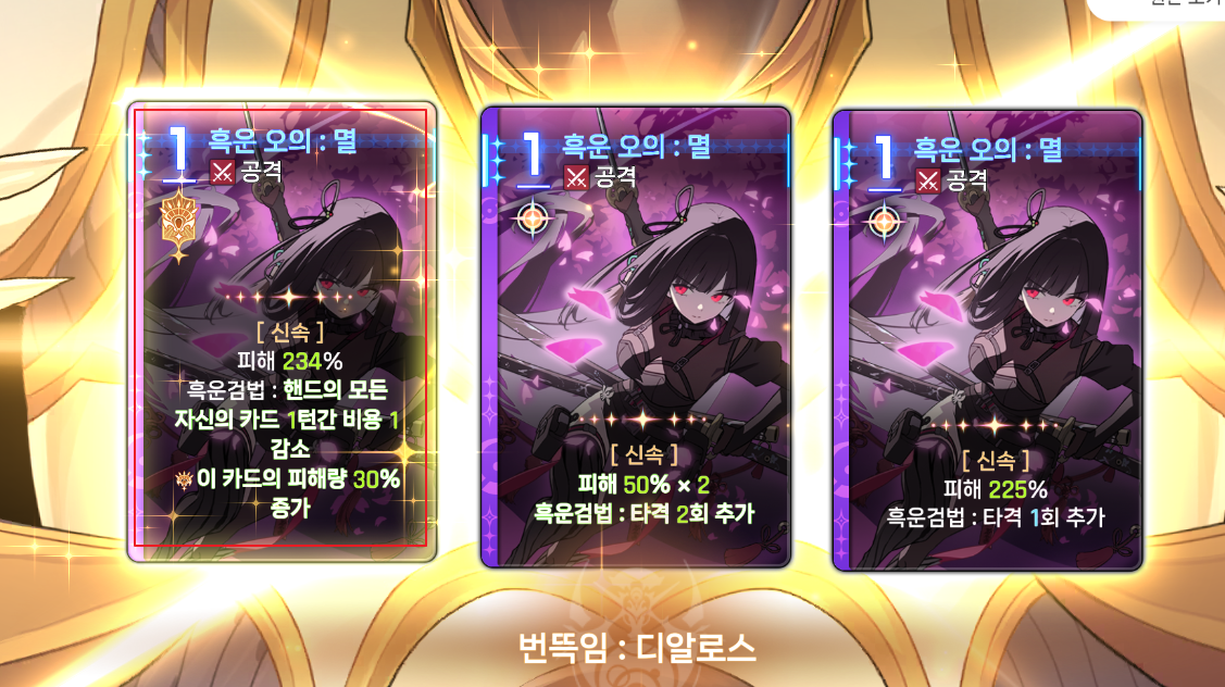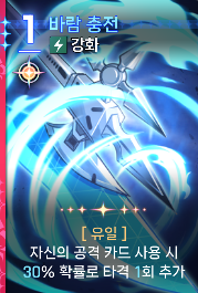 | 주도 | 50% 확률로 비용 감소, 다른 카드보다 먼저 사용해야 유지됨 |