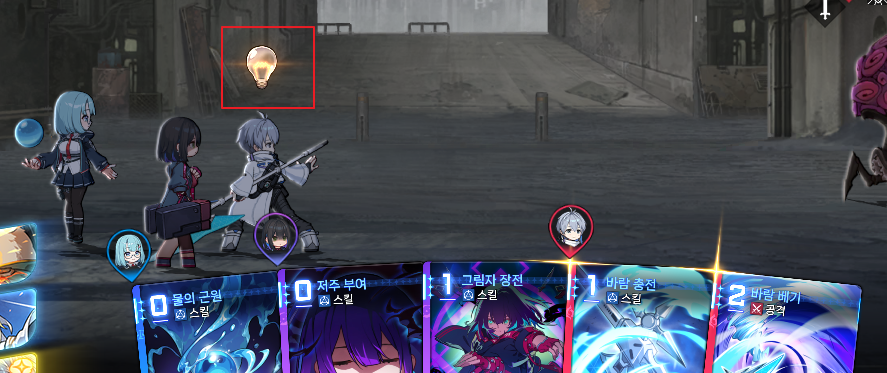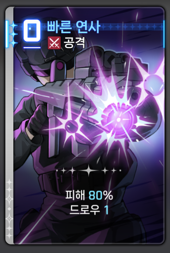 | 개전 | 전투 시작시 뽑을 카드로 맨 위에 두어서 초기 플레이 전략 용이 |
