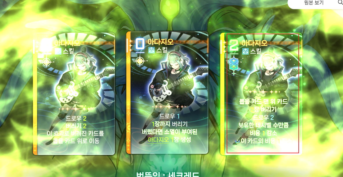 (기본 카드 적용은 아래 3장의 카드만 해당되는 효과)