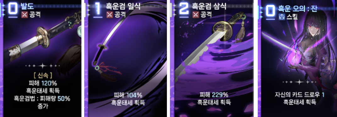 흑운 오의는 총 2개의 카드와 2개의 흑운 태세를 활용하는 카드로 구성되어 있는데,