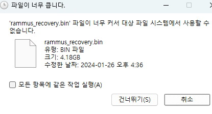 Ubuntu를 설치할 때 NTFS로 진행하면 부팅이 않될 수 있기 때문에, 만약 4GB 이상 파일을 복사해야 한다면, 별도의 USB를 이용하거나, 압축된 상태로 옮기는 것을 추천한다.