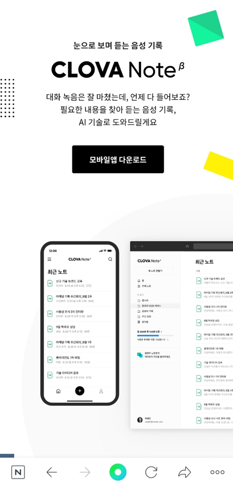 최근에 음성을 텍스트로 변환해주는 도구들이 점점 많아지는 것을 느끼고 있는 찰라, 네이버에서 클로바 노트라는 요물을 내놓아서 간단히 사용해 보았다.
